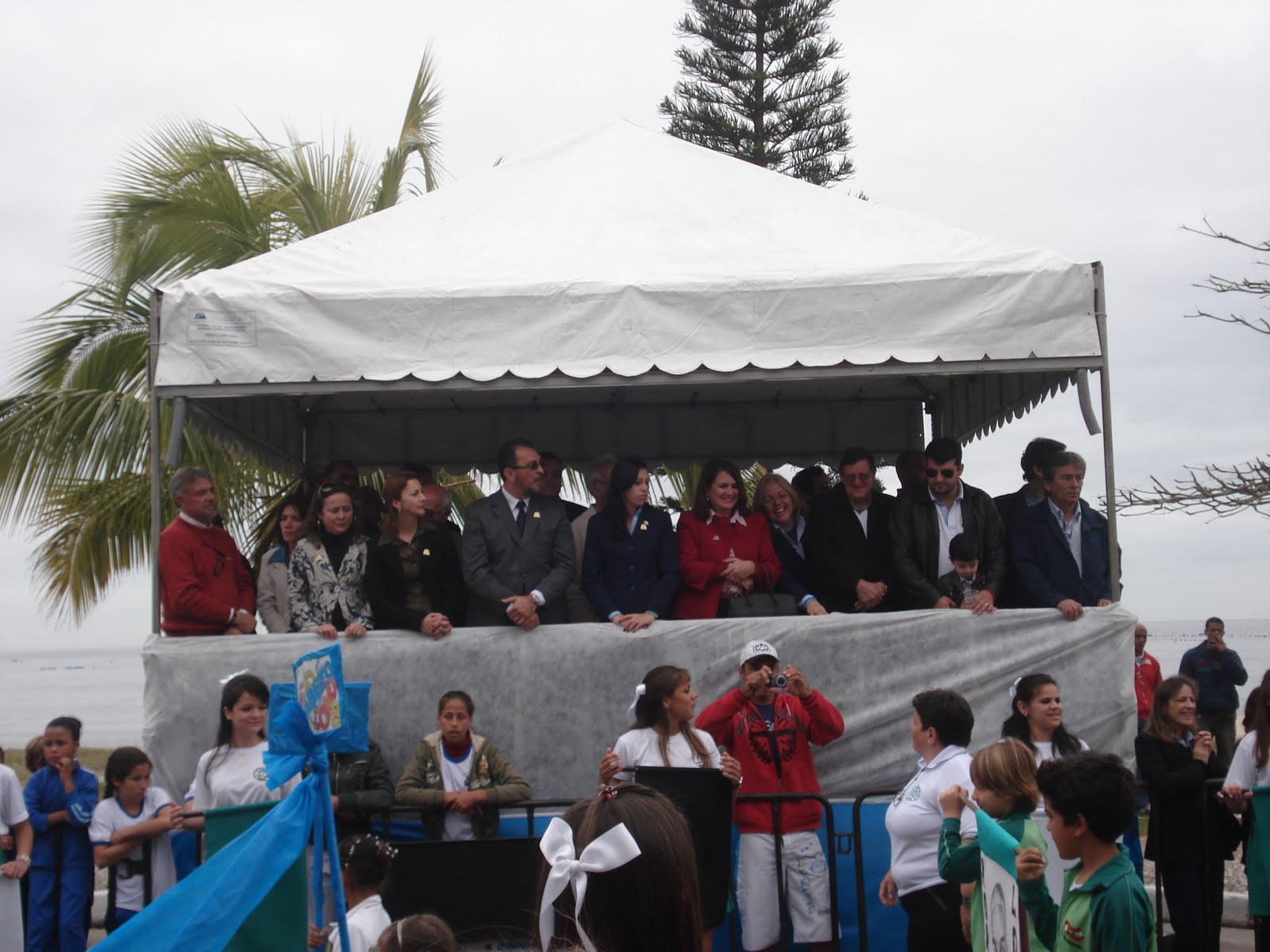 O Desfile do dia sete.... no dia três, na Enseada foi espetacular com os poucos alunos das poucas Escolas desfilando e sambando aos poucos, no rítimo das fanfarras.